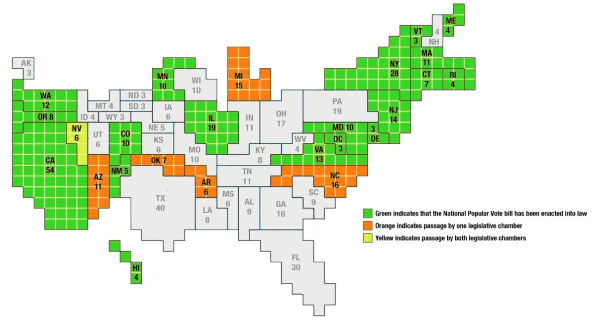 Voters understand that geography has become a weapon. Trumps ongoing efforts to rig the election via gerrymandering (amount other tactics) have made it even more visible. If you’ve seen the disgusting gerrymandering of the 2026 cycle— in Texas, California, North Carolina, Ohio, and the “retaliatory redistricting” referendum happening in Virginia —you see the connection. One promotes the other. Visibility is good – the NPVIC is broadly popular so the more people who understand it is an option the more energy it gets.